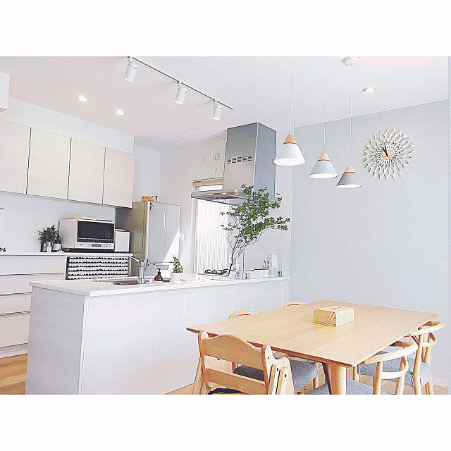 ダイニングにグレーの壁紙を貼りました インテリア 家 壁紙 グレー